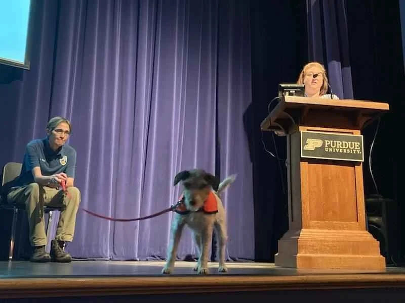 K9 Pocket and Jennifer Jordan Hall took a girls trip and presented a paper at the Purdue Road School with Andrea Crider of the ASC Group. The subject: Pocket's finding 1,000 year-old human remains!