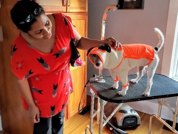 K9 Pocket getting custom fit for a snake suit to search for missing WWII airmen shot down in the Indian Himalayas. I realized that the fact that K9 Pocket even needed a snake suit put her in too much danger. You will be glad to know we did not go.